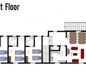 Rooms 1- 3 are each accessed separately from an open walkway just along from the main entrance. Rooms 4 – 6 are accessed separately from an exterior walkway directly above. Room 7 and all of the communal areas are accessed via the main entrance.