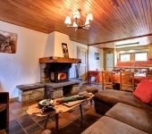 Many traditional features in the cosy Chalet Andre in Meribel have been retained, including the stone fire place and rustic furnishings.