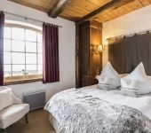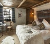 Rooms are decorated in a modern alpine style with natural wood and sumptuous fabrics.