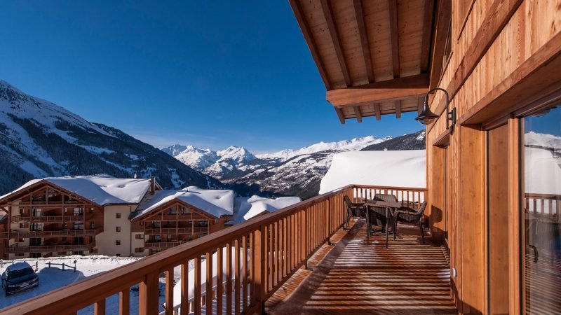 There is cosy seating around the log fire and a generous dining area with bespoke dining table and furniture. There are two wide balconies leading off the dining area to take in the view and afternoon sun after a great day on the slopes.