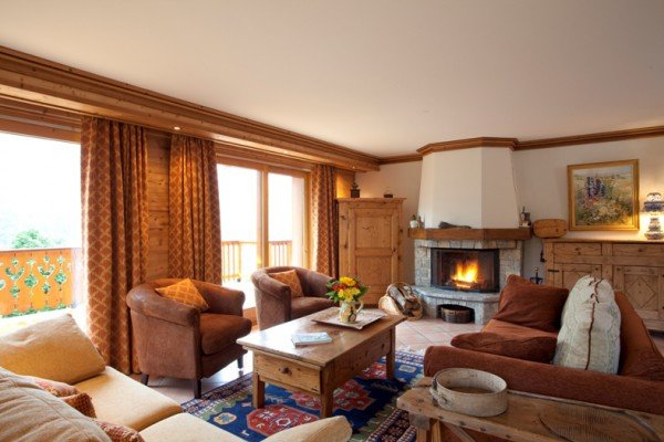 Chalet Serpolet is in Meribel Centre. Stylishly decorated open plan living area with beautiful soft furnishing.