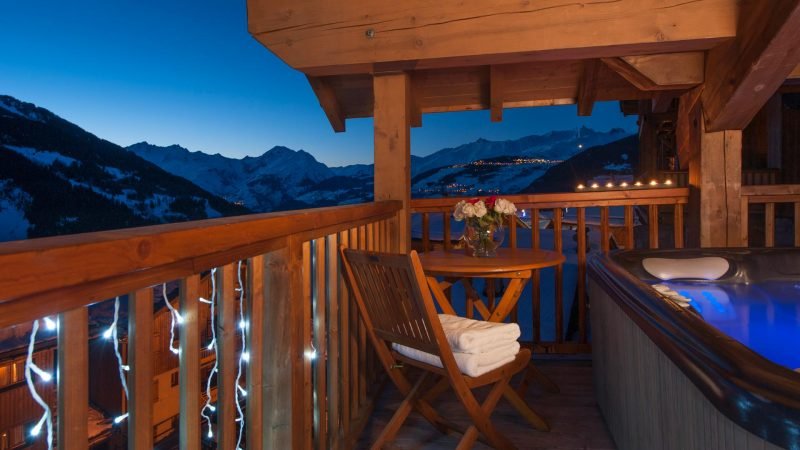 After a long day on the slopes you can wind down in the bubbling hot tub on your private balcony. The view across the valleyāÆis second to none.