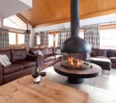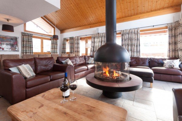 The central suspended wood burner is not only eye catching but a focal point of the open plan living and dining area. There are simply breath-taking views of the Meribel Valley from the lounge and most of the bedrooms.