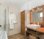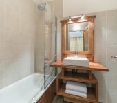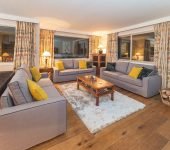 This bright and airy apartment is comfortably furnished and arranged over a single floor, with a spacious open plan living and dining area complete with log fireplace and dramatic panoramic alpine views through wrap around windows. The chalet boasts flat screen TV, DVD player, Apple TV and a Bluetooth soundbar. There is also an extravagant balcony with stunning alpine views.