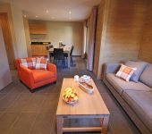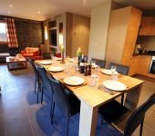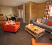 The Petit Sapin in Morzine has three bedrooms, two bathrooms & a large open plan kitchen, dining and living room with patio doors opening out onto a large terrace with outdoor furniture.